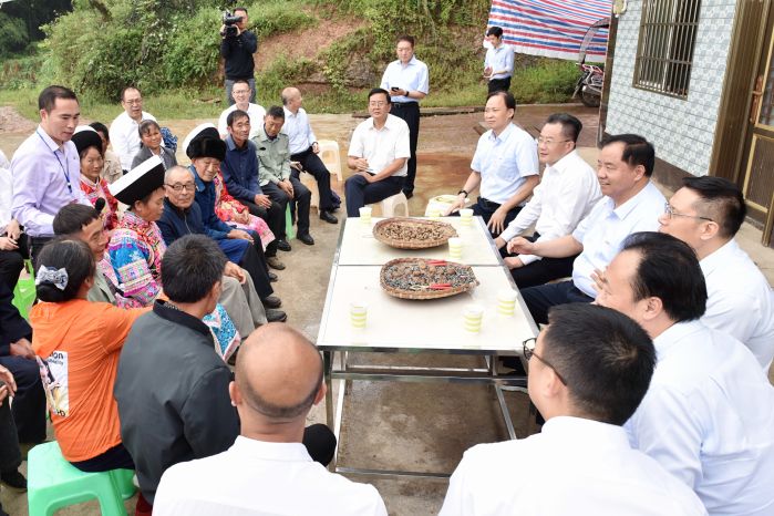當(dāng)天,陳肇雄一行深入到敘永縣白臘苗族鄉(xiāng)高峰村黨群服務(wù)中心、白臘苗族鄉(xiāng)亮窗口村電科牛場(chǎng),了解黨建引領(lǐng)促進(jìn)脫貧攻堅(jiān)、產(chǎn)業(yè)發(fā)展形成鞏固脫貧成果“造血”機(jī)制情況;走進(jìn)貧困戶家中,仔細(xì)察看了解他們的生活狀況和脫貧情況。