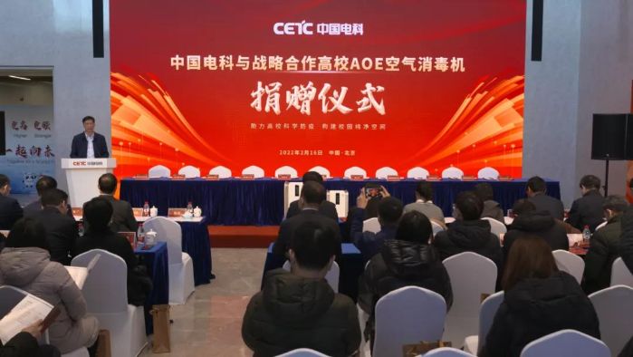 2月16日,中國電科在京舉行“助力高校科學防疫 構(gòu)建校園純凈空間”——AOE空氣消毒機捐贈儀式,向清華大學、北京大學、北京航空航天大學、北京郵電大學、北京理工大學等全國十所高校捐贈了最新研制的空氣消毒機,助力校園疫情防控。中國電科副總經(jīng)理何松,國資委、教育部、工信部及上述高校相關(guān)領(lǐng)導出席活動。