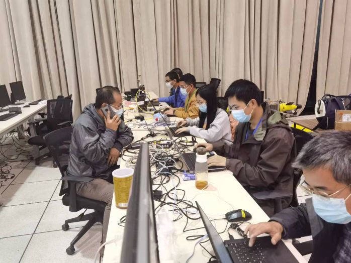 在聯(lián)試現(xiàn)場,項目團隊克服水土不服,加班加點,積極與總體,相關聯(lián)試廠家溝通交流學習。大家一邊討論協(xié)議規(guī)范,一邊進行現(xiàn)場開發(fā),一邊還要進行接口聯(lián)調,他們用自己堅韌認真、任勞任怨的工作態(tài)度,展現(xiàn)了“電科人”的風采。經過35天的積極奮戰(zhàn),終于順利完成系統(tǒng)第一階段的聯(lián)試工作。