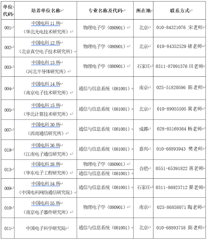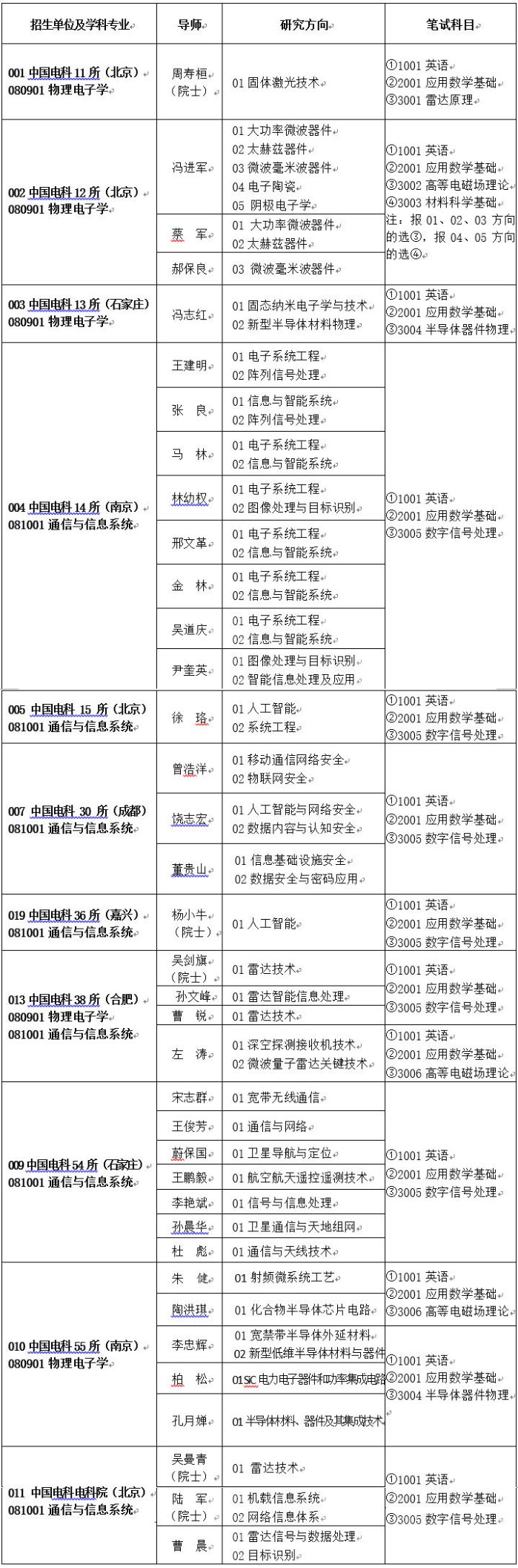 1.招生單位代碼及名稱:83000 中國電子科技集團公司電子科學(xué)研究院。