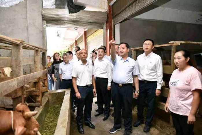 在高峰村脫貧致富帶頭人趙雪紅家里,陳肇雄走進(jìn)牛棚認(rèn)真查看養(yǎng)殖情況,親切詢問(wèn)飼養(yǎng)數(shù)量、年收入情況。趙雪紅家曾經(jīng)因?yàn)橐淮瓮话l(fā)的特大山洪,失去了親人,也幾乎喪失了對(duì)生活的信心。在中國(guó)電科家庭式母牛散養(yǎng)項(xiàng)目啟動(dòng)后,她主動(dòng)報(bào)名參與,并按照散養(yǎng)要求,全身心的做好科學(xué)飼養(yǎng)。2019年,趙雪紅賣了5頭半大牛犢,換來(lái)了近5萬(wàn)元的收入,家里還有8頭牛在欄,價(jià)值近20萬(wàn)元。陳肇雄對(duì)趙雪紅自立自強(qiáng)的精神表示贊賞,對(duì)其家庭的扶貧變化感到高興,叮囑她要發(fā)揮好致富帶頭人作用,帶動(dòng)更多鄉(xiāng)親脫貧致富。