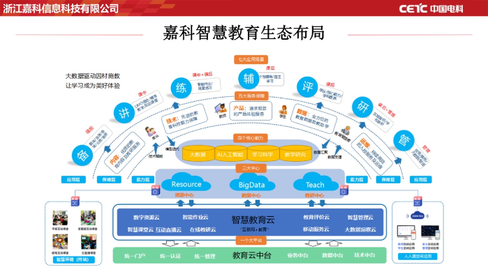 目前,教育信息化浪潮席卷全國?!半p減”政策的出臺更是將家校聯(lián)通的重要性提高到了新的高度。校園信息化的部署顯得尤為重要。中國電科嘉科信息打造的智慧教育方案,通過“一個平臺”“兩個中心”“三大核心能力”“四大服務(wù)體系”,提供“七大應(yīng)用場景”服務(wù)。