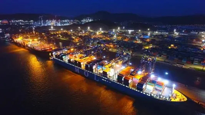 在某國內(nèi)大型物流港口,無人作業(yè)自動引導車車循環(huán)往來,超車換道、裝箱卸貨、多車協(xié)同等作業(yè)流暢鏈接……