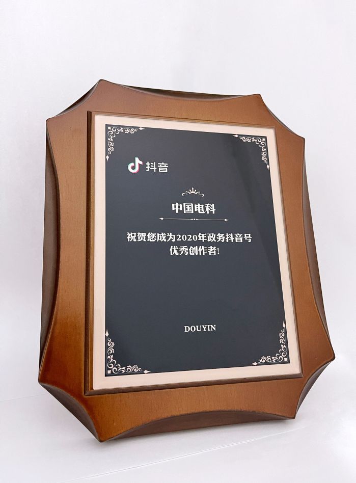 中國(guó)電科抖音號(hào)榮獲抖音2020年優(yōu)秀創(chuàng)作者稱號(hào)